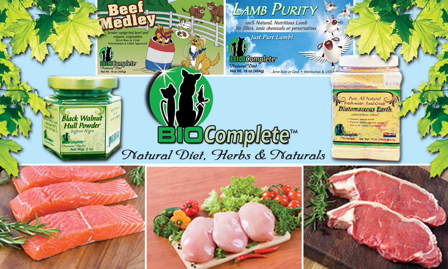 Our holistic products include natural herbs from BioComplete including remedies for fleas and heartworms, homeopathic remedies and all natural treats.